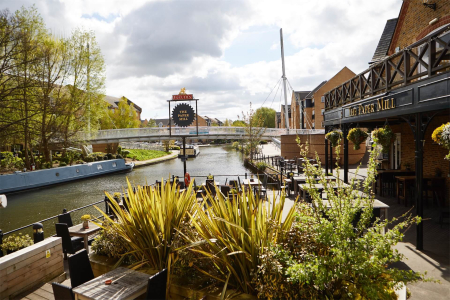 The Boathouse pub & restaurant sits beside the Grand Union Canal. Dog Friendly.